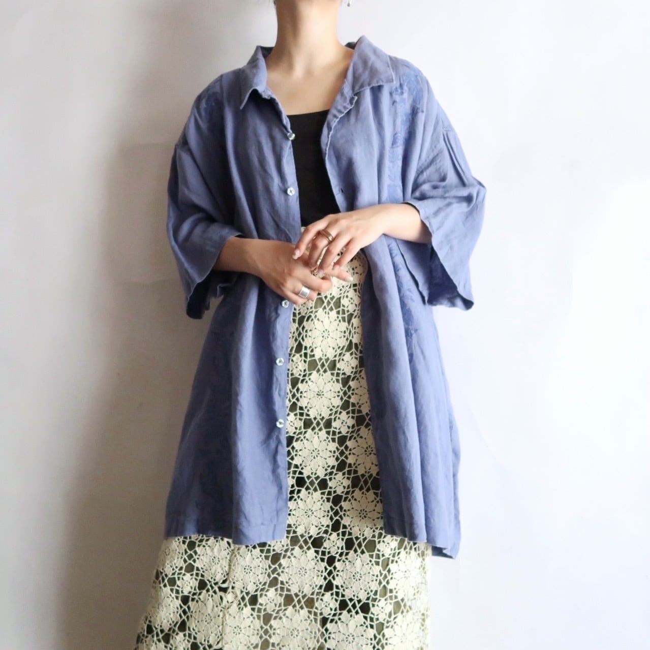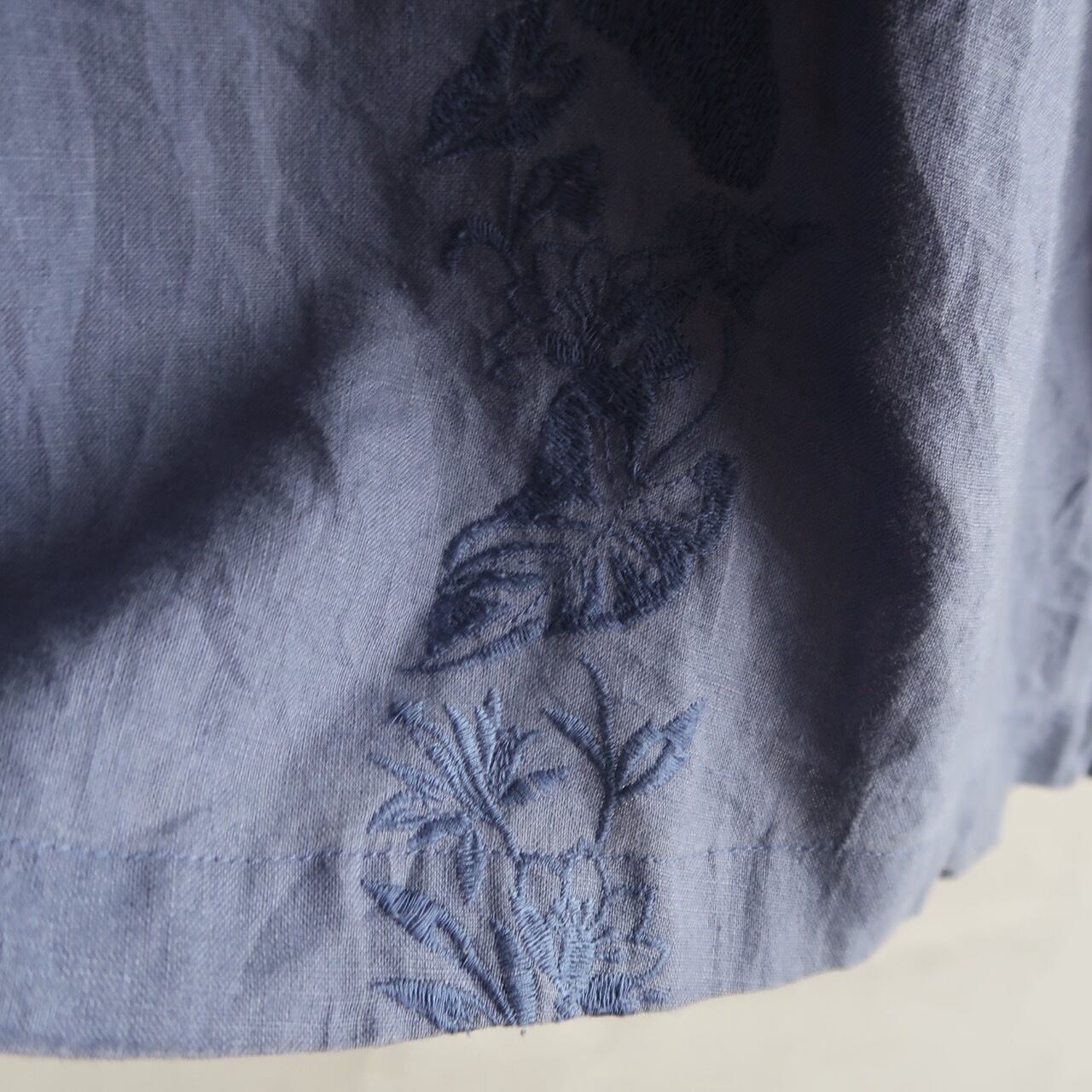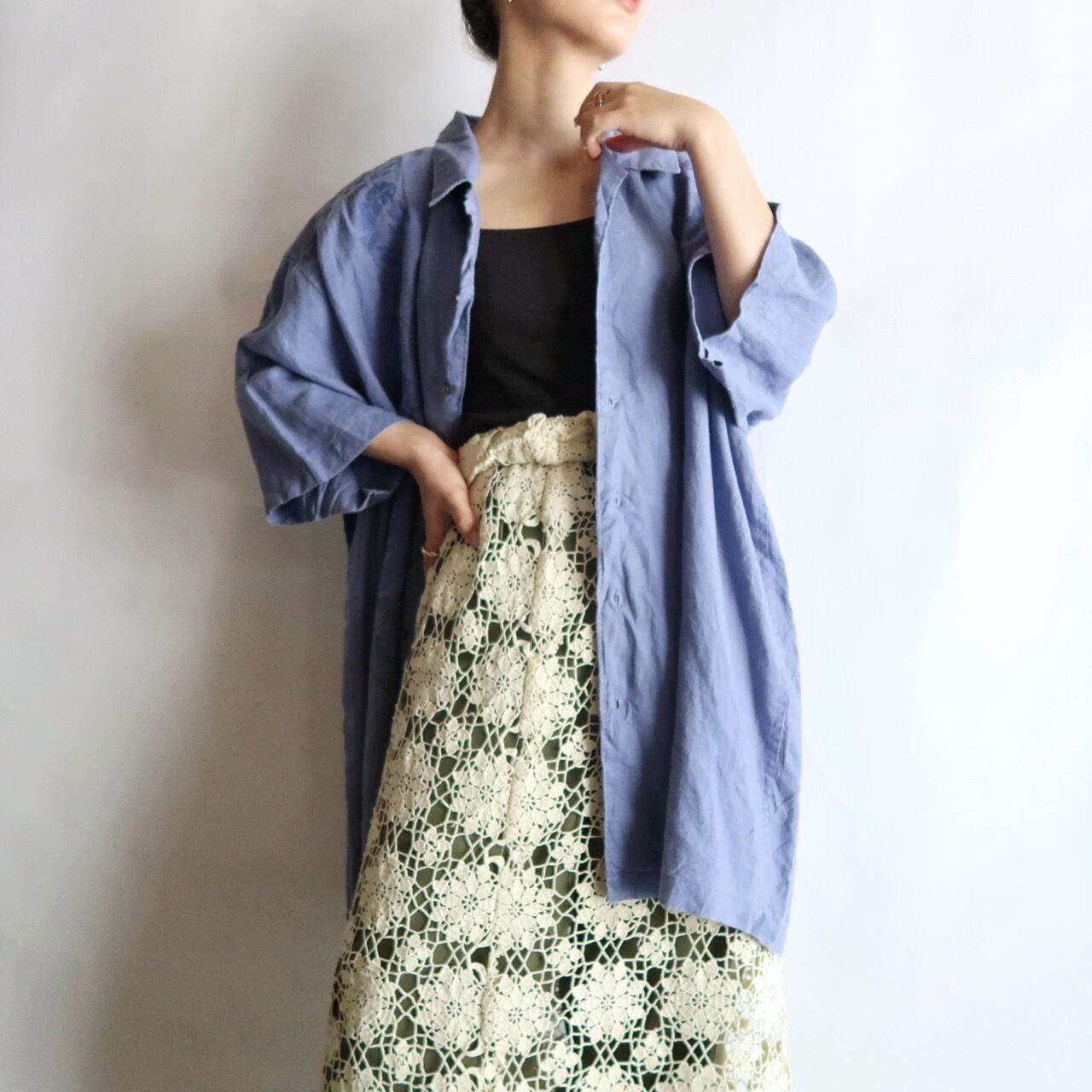 embroidered linen oversized short sleeve shirt