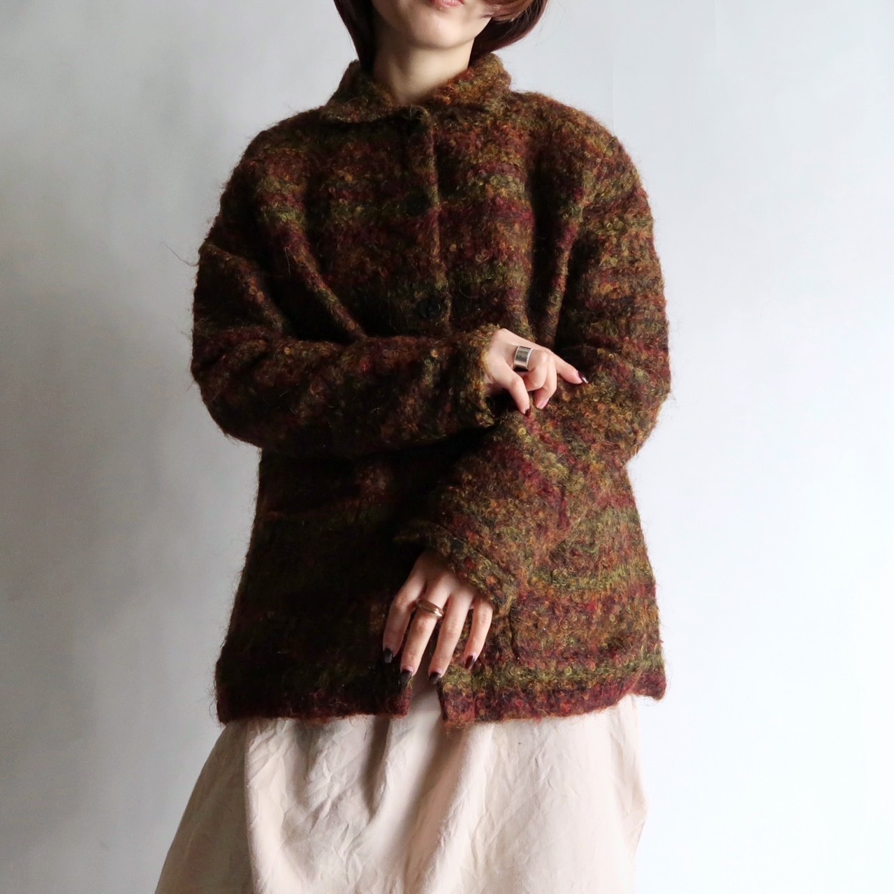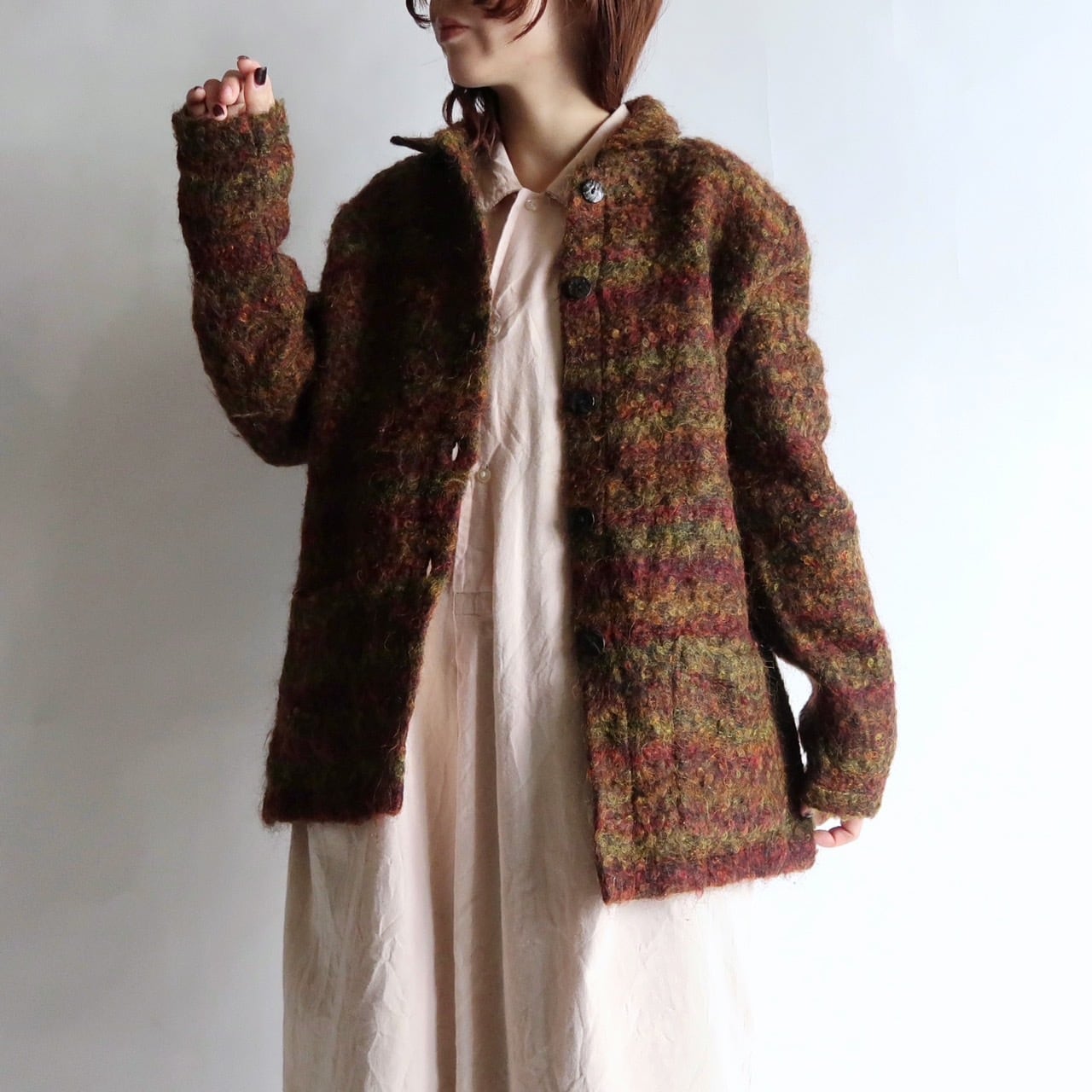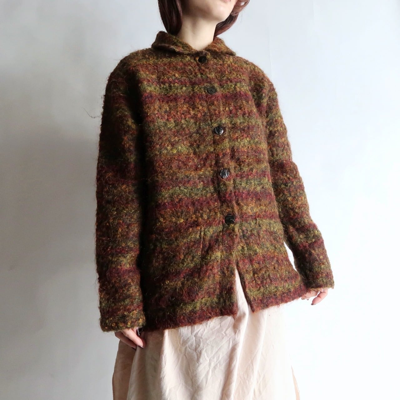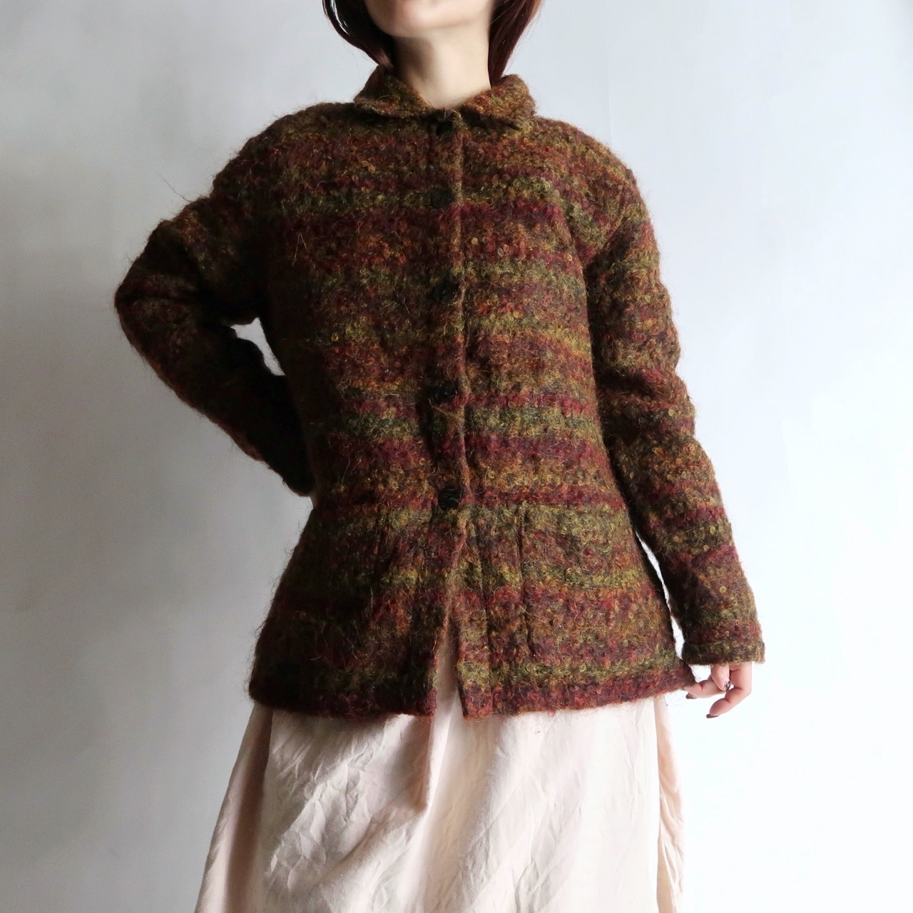 collared wool knit cardigan/turkey