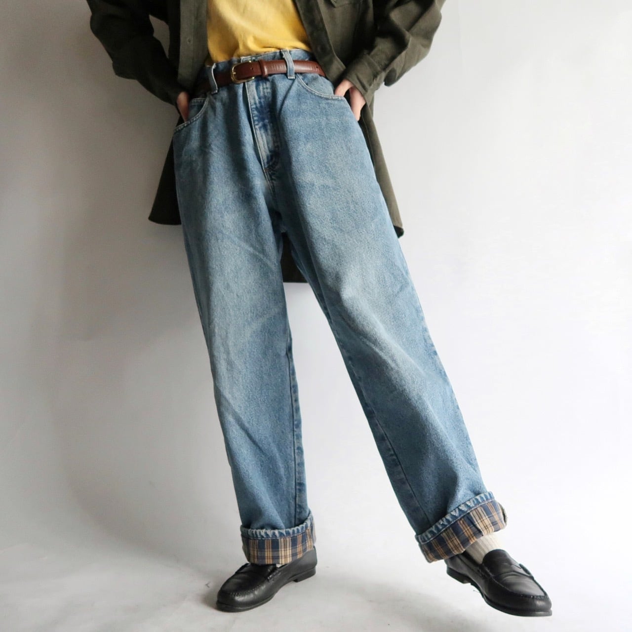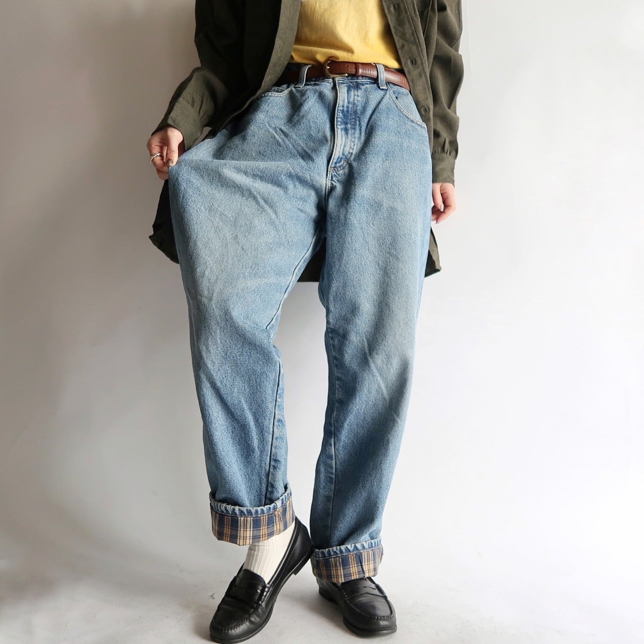 ※ロールアップすると裏地がチェック柄になってます。