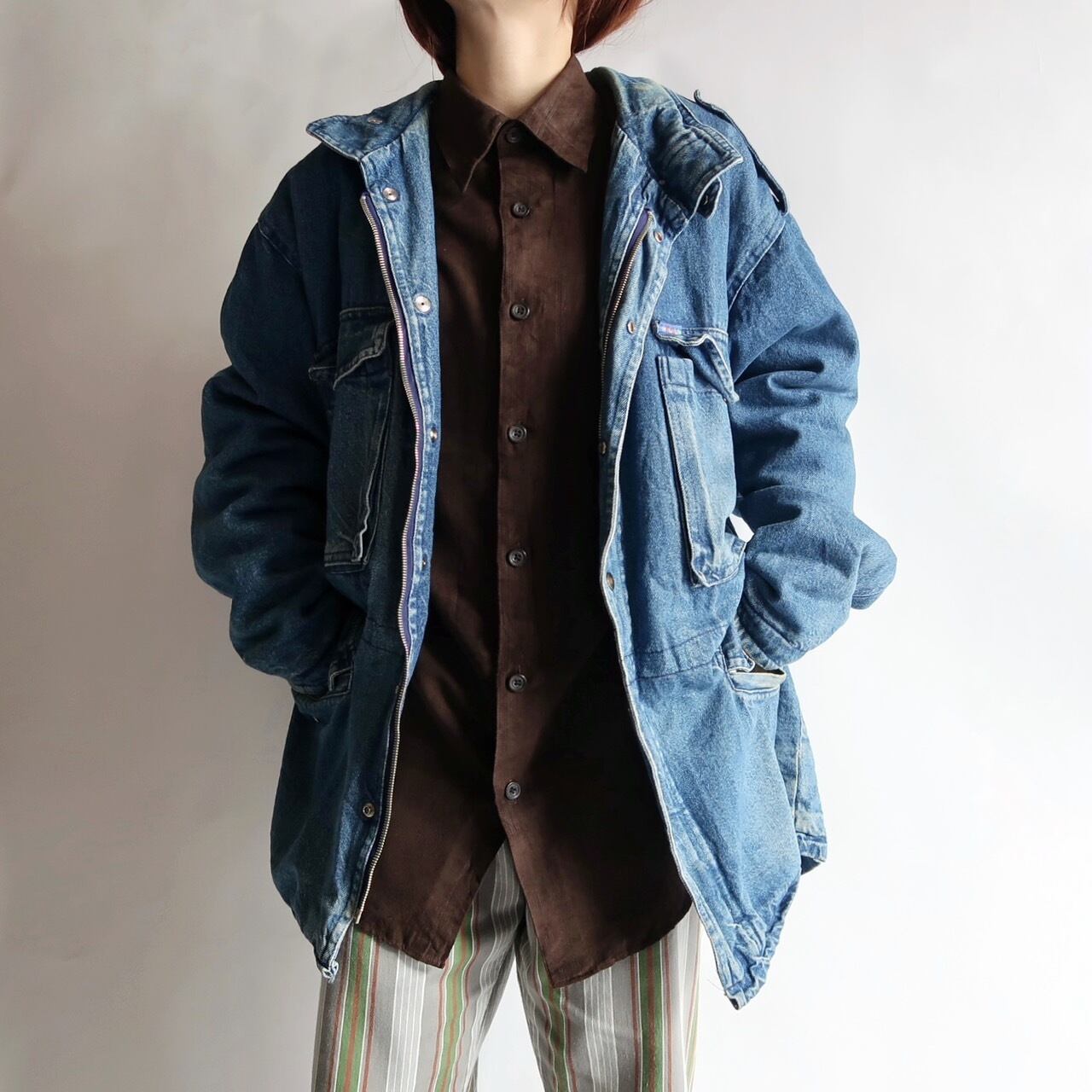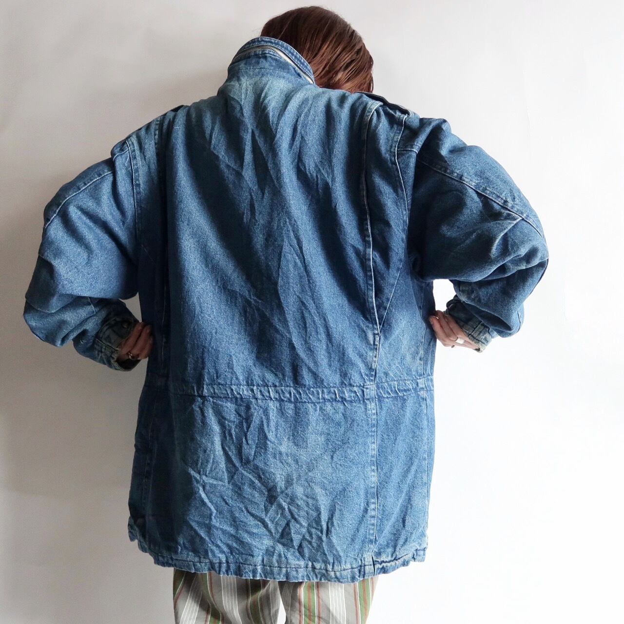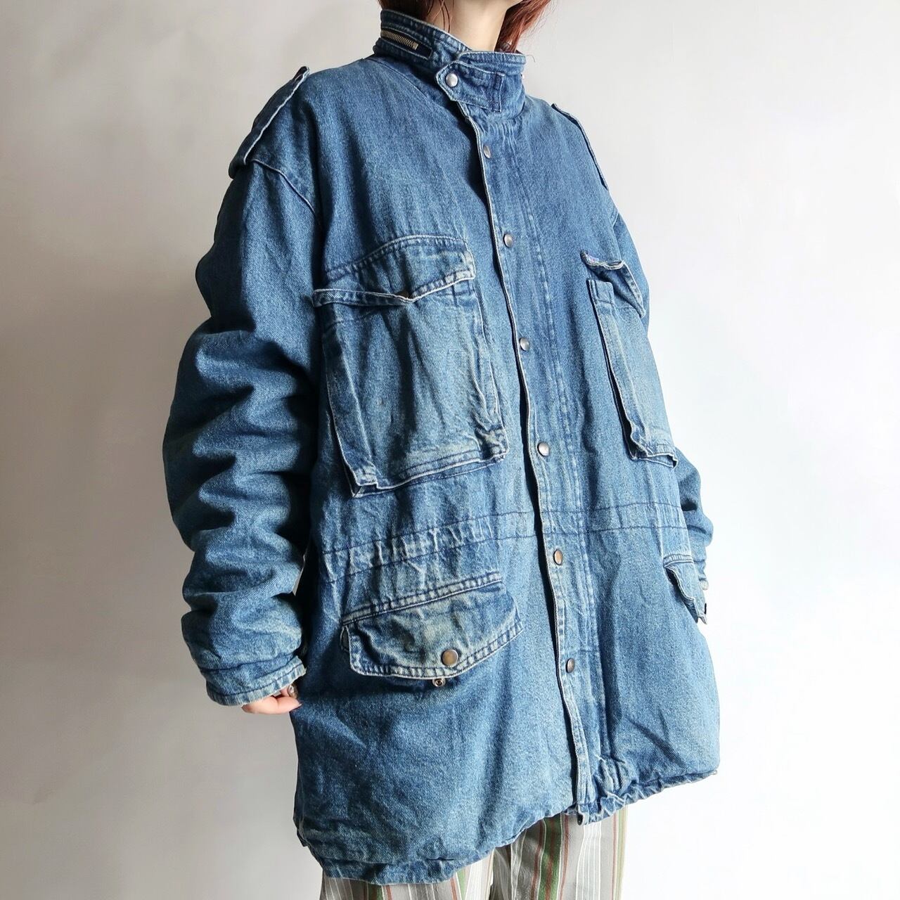 stand-collar denim coverall jacket