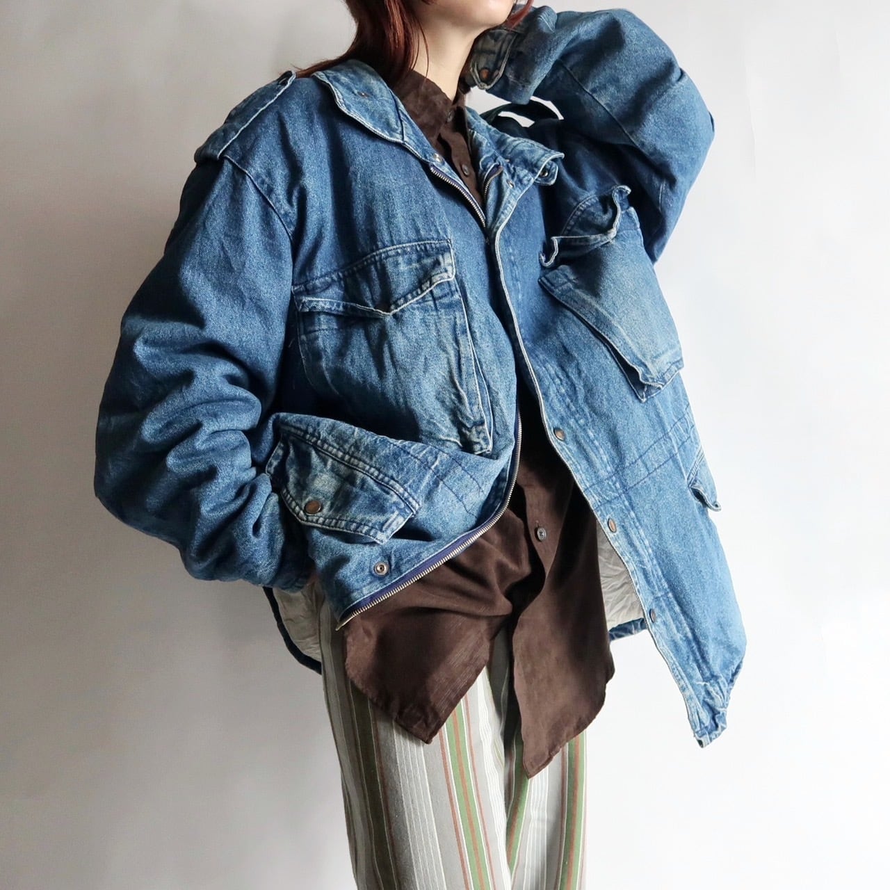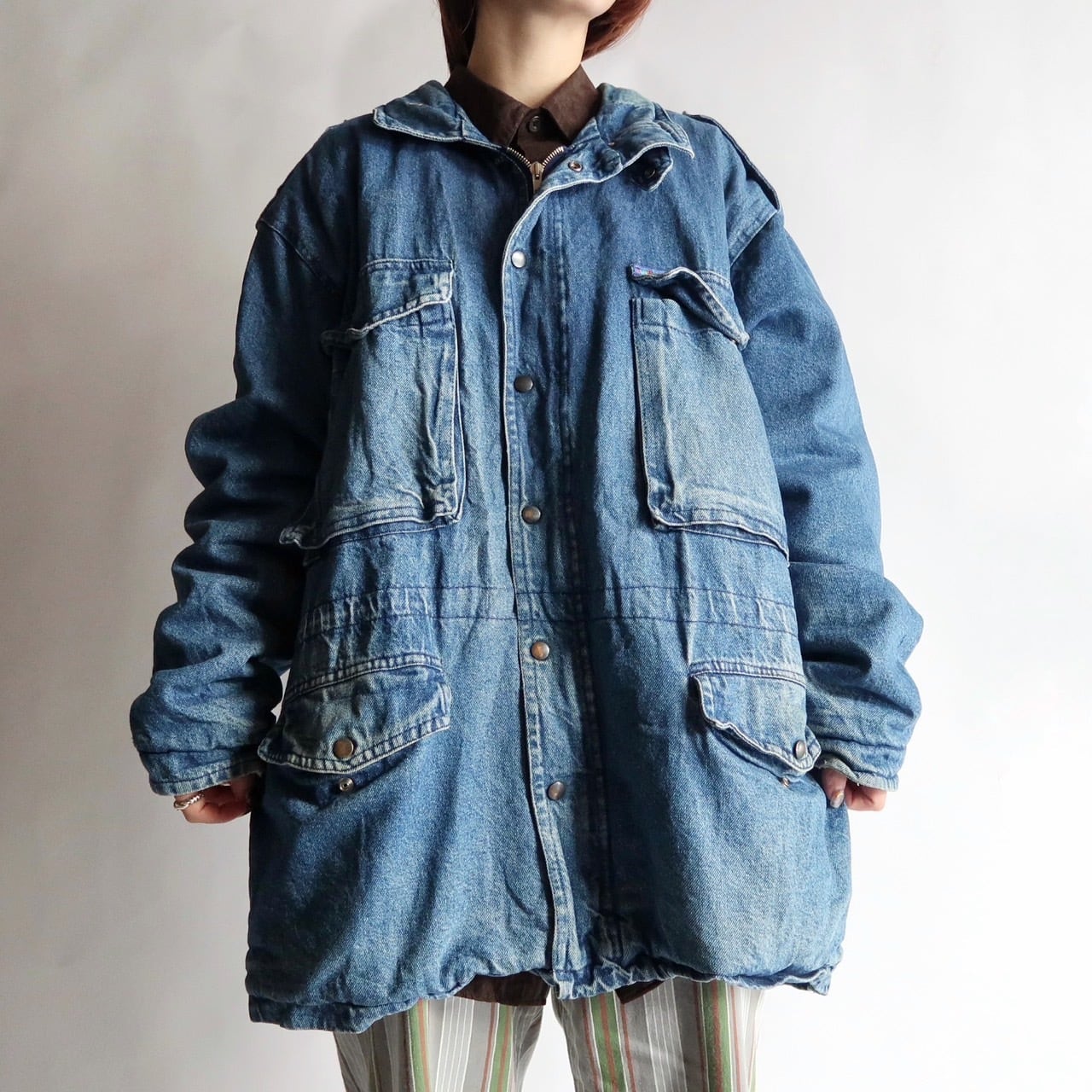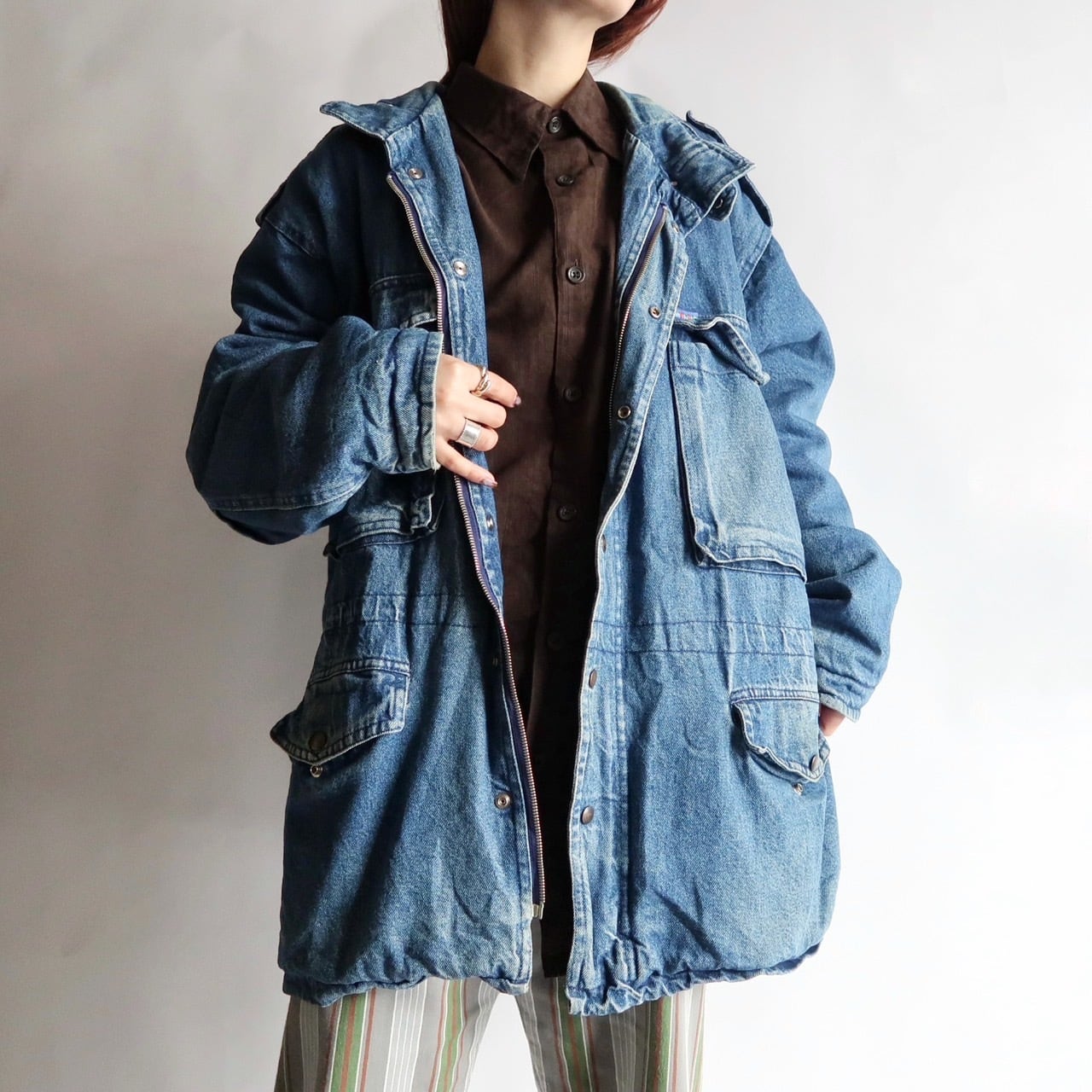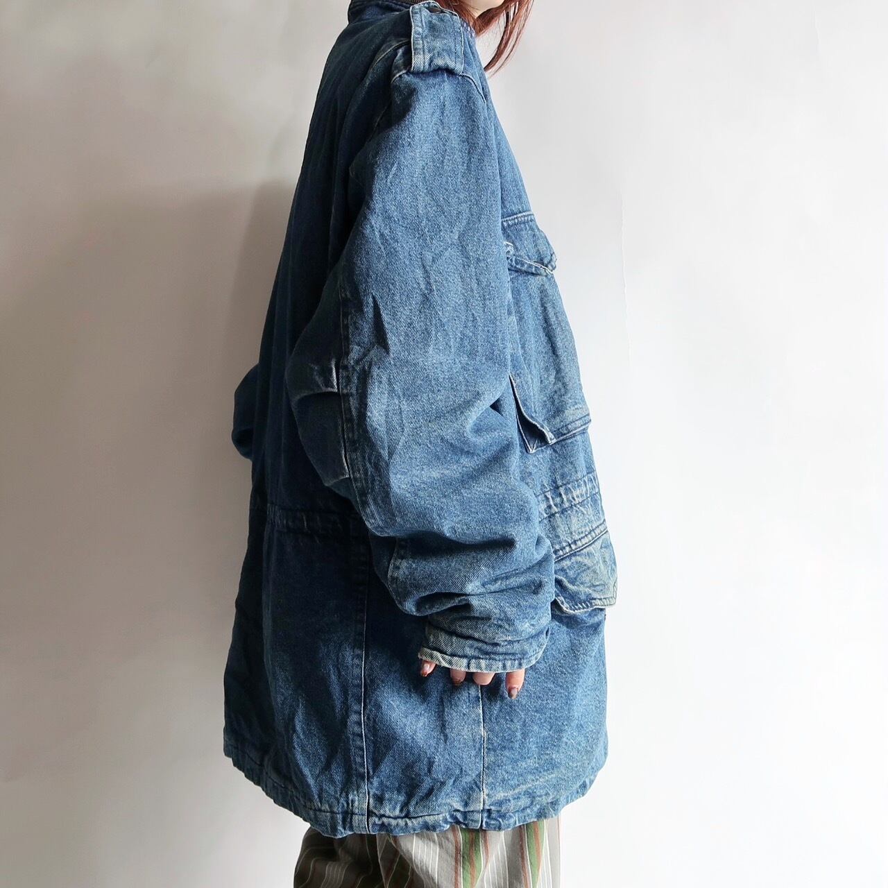 stand-collar denim coverall jacket