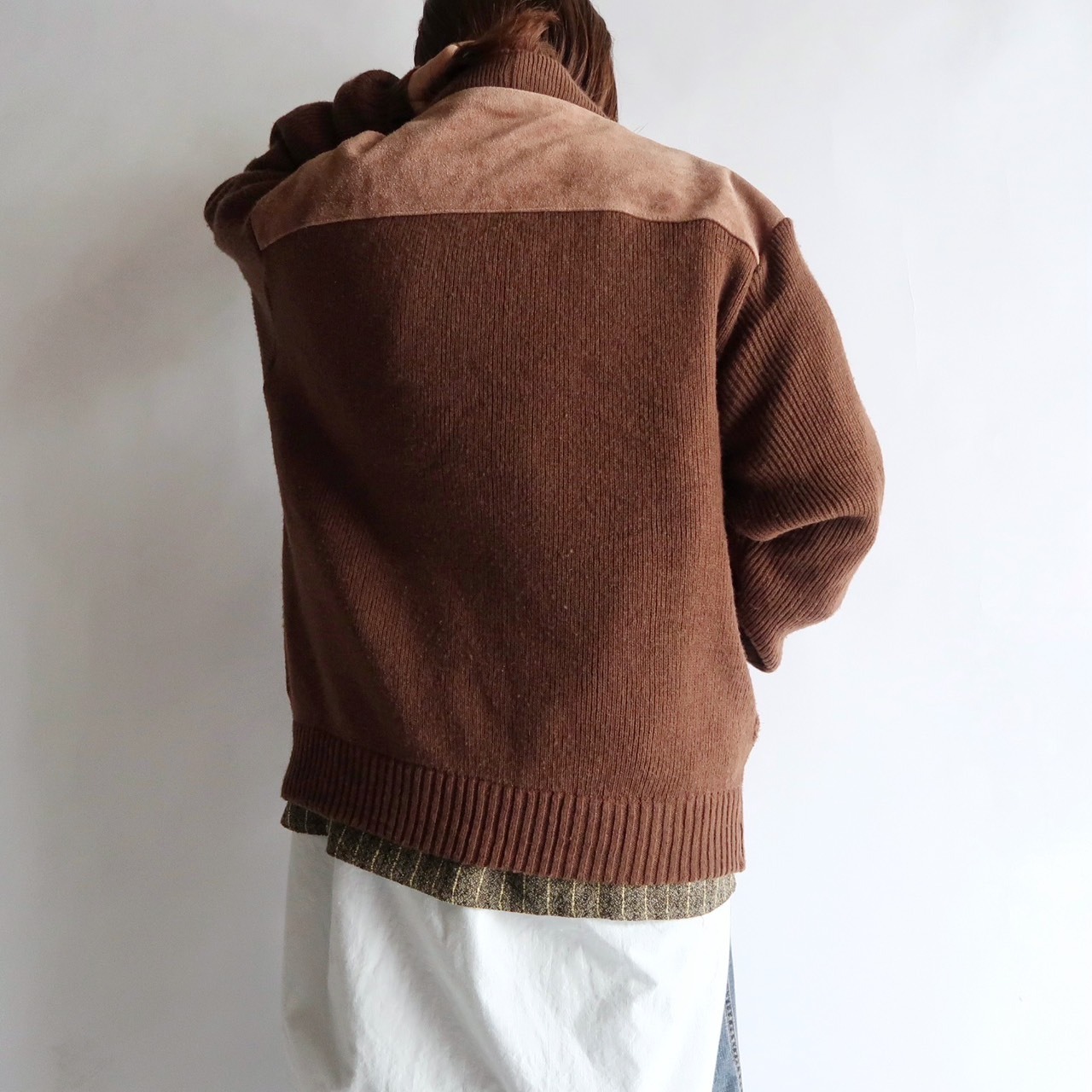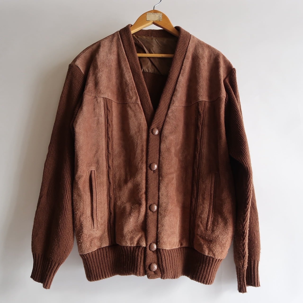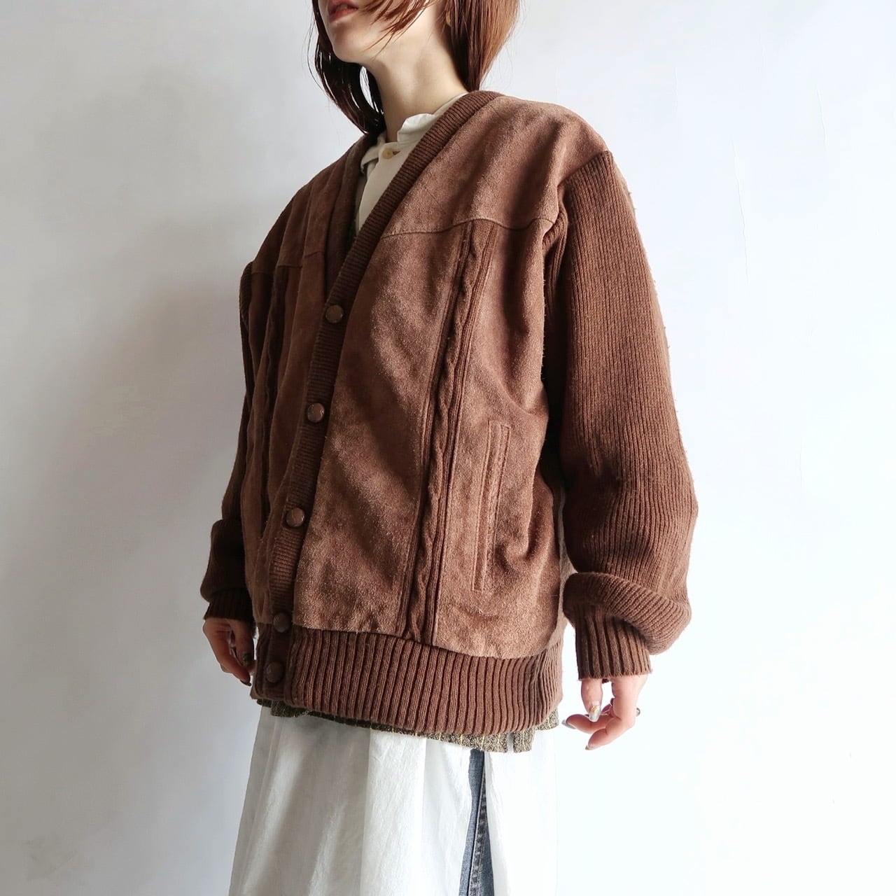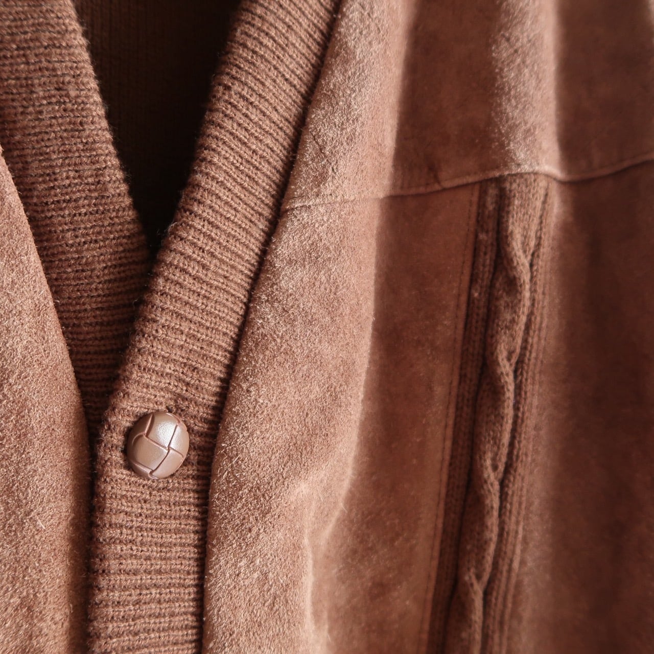 suede leather trim knit cardigan