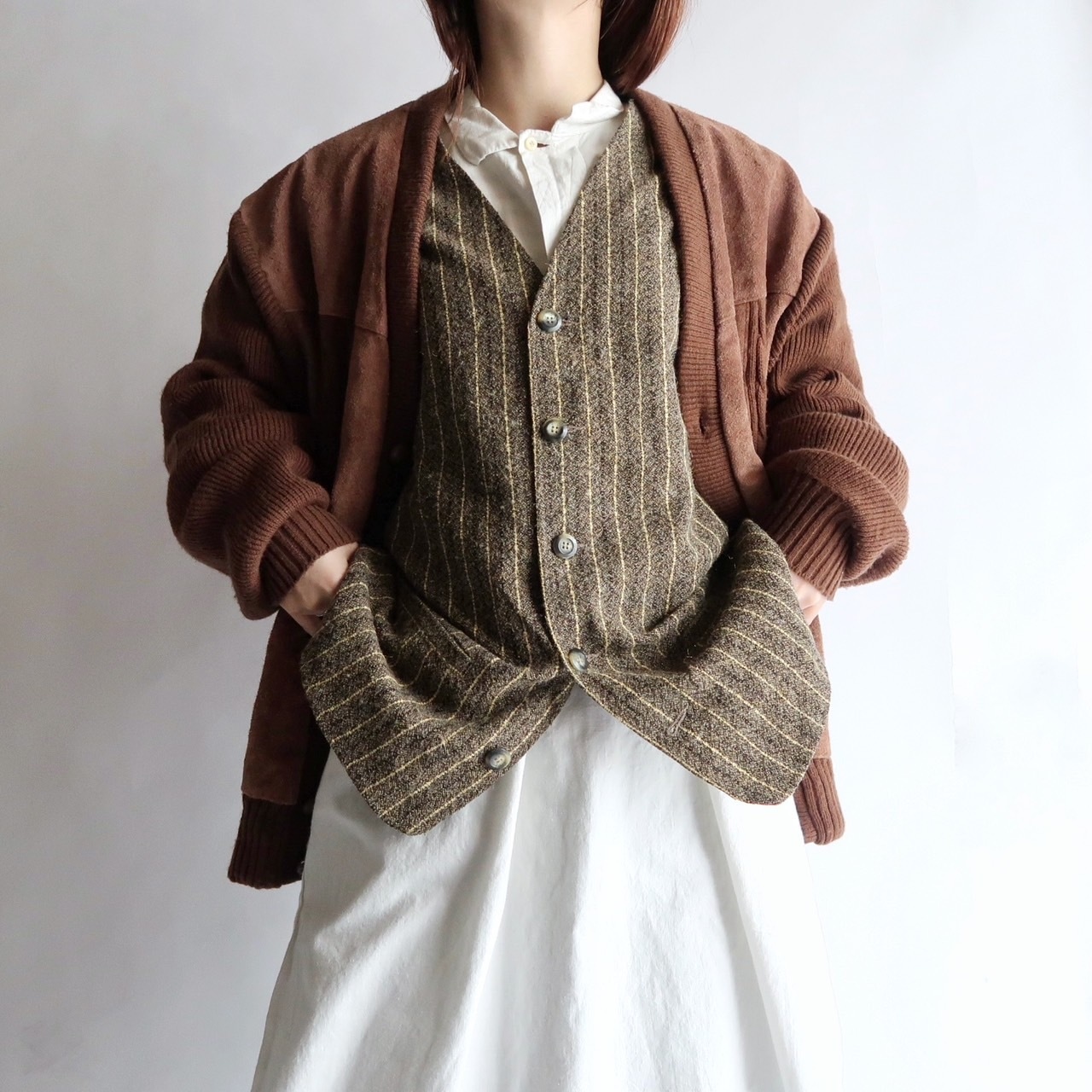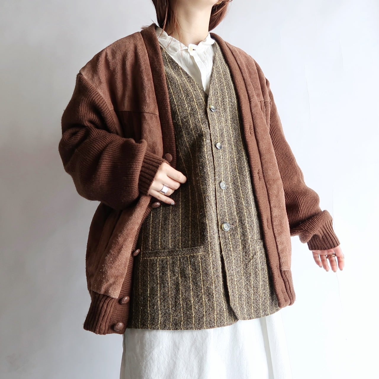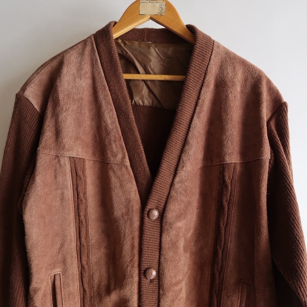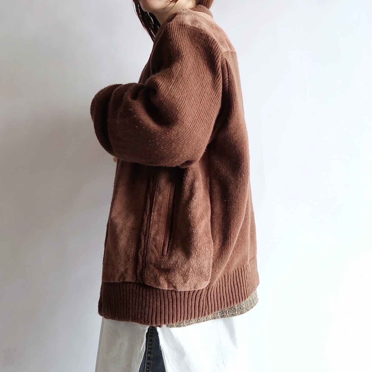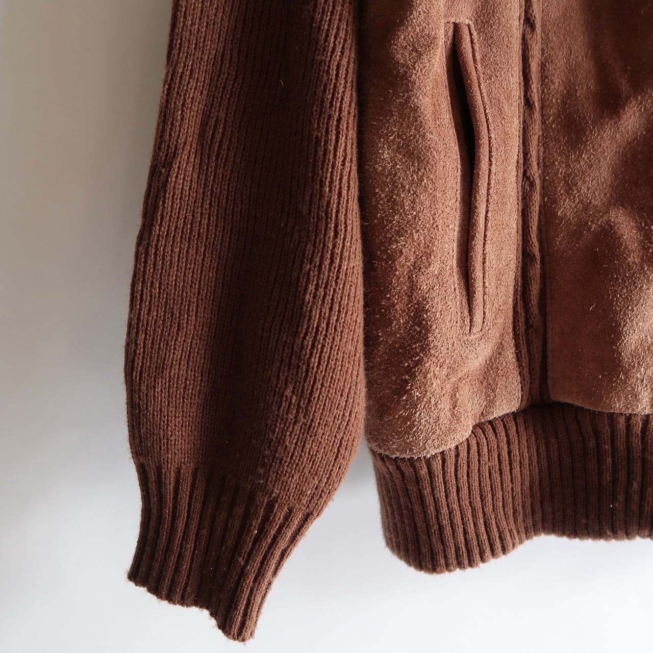 suede leather trim knit cardigan